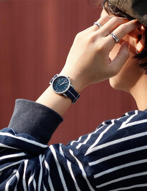 MUSシリーズは、仕上げ、仕様、着用感に至るまで、伸縮性と耐久性に優れたフランスパラシュートスタイルのウォッチストラップ、Marine Nationaleからヒントを得て考案されました。非常に軽量で、調整可能な快適な着け心地は、日常使いにピッタリの時計です。